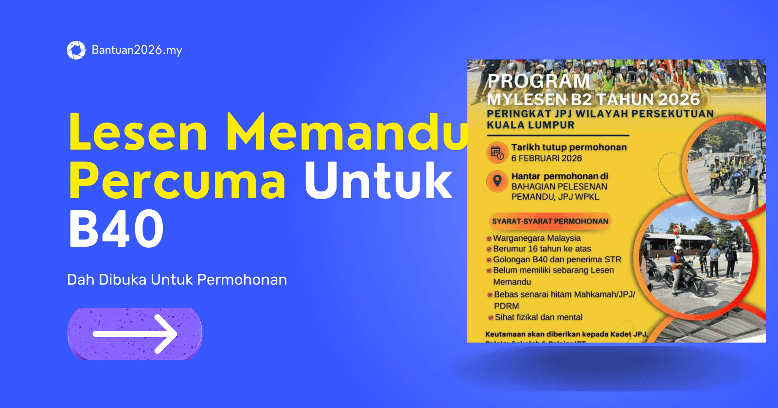 Program MyLesen B2 KL bagi tahun 2026 kembali dibuka khusus untuk warga Wilayah Persekutuan Kuala Lumpur yang layak, terutamanya golongan B40, pelajar dan belia yang belum memiliki lesen memandu. Inisiatif ini dilaksanakan oleh Jabatan Pengangkutan Jalan (JPJ) di bawah seliaan Kementerian Pengangkutan Malaysia (MOT) sebagai usaha membantu rakyat mendapatkan Lesen Memandu Malaysia (LMM) Kelas B2 secara percuma.