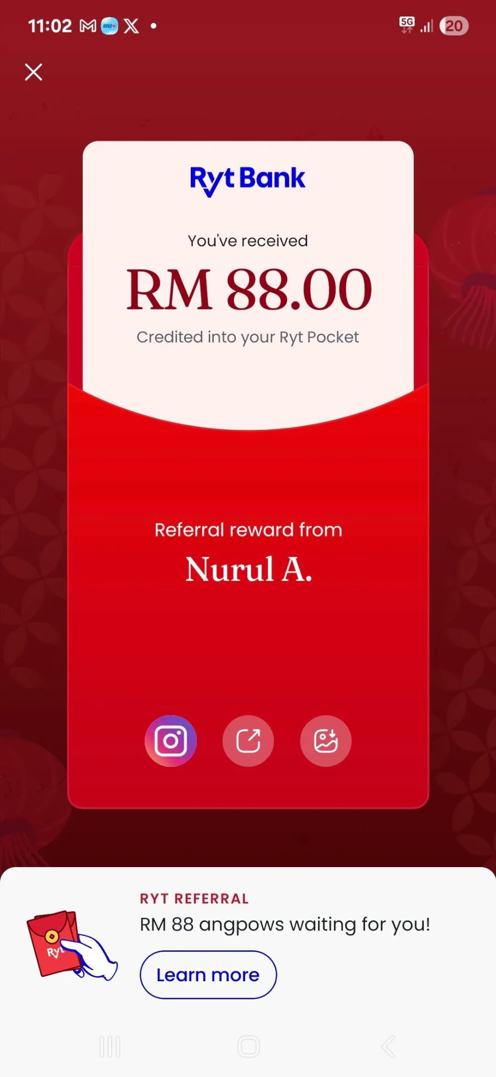 - Buka Angpow: Selepas akaun aktif, anda akan menerima notifikasi “Ryt Angpow”. Klik untuk lihat jumlah ganjaran yang anda dapat!